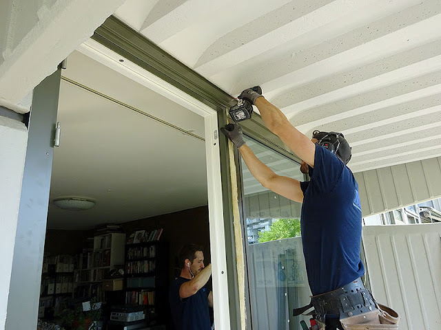 Självaste fönsterbytet skulle ta två halvdagar. Det tog mindre än en dag. På bilden ser ni Hannes och Simon från företaget MIR som har sitt huvudkontor i Vimmerby. Killarna är födda och uppväxta i samma stad. De berättade att det pågående projektet med fönsterbyte på över 800 lägenheter är det största uppdraget företaget någonsin fått. Hannes och Simon var otroligt effektiva och duktiga. Fönstren fick sitt eldprov direkt med pågående gul pollengegga överallt ni vet. De är hur täta som helst. Fantastiskt. Otroligt bra jobbat!