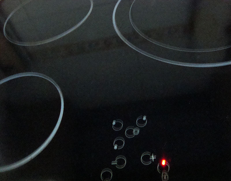 Bilden har ingenting med psykedelisk konst att göra utan föreställer den supermoderna induktionsspisen som vi hade i vår lägenhet i Benidorm. När lampan lyser rött skyddar den alla från att använda den. För att vara ärlig så hade jag ett personligt skydd under hela två veckor då jag inte lyckades med att få den i ”oskyddat läge” om man säger så. Maken som ju är mera tekniskt lagt än jag förstod spisens pipande och var salig att få leka med detta pratande och blinkande vidunder.