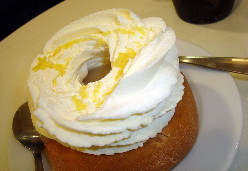 Efter den framgångrika spis-/ugnsjakten tyckte vi att vi var värda en belöning. Visst kan jag tycka att den här semlan är väldigt tidigt ute, men det var faktiskt en saffransvariant. Har aldrig smakat en sådan förut, men kan försäkra er att min halva av semlan var utsökt. Å japp, den hade en hatt också, men den petade vi bort. Kan tänka mig att Gun kommer att insistera på en utflykt till Danderyds konditori imorgon;-)