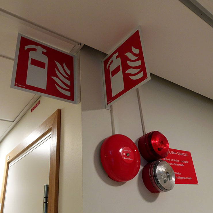 Kolla den här anordningen! Här finns till och med instruktioner för besökarna om hur man ska tolka de olika signalerna. Frågan är om man har tid att läsa anvisningarna i en nödsituation. Tveksamt.