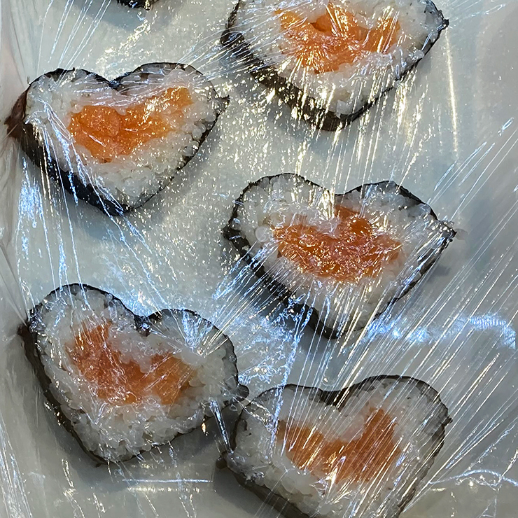 Hjärtesushi, oooooh! Fast formen spelar ingen roll när man slukar dem i ett nafs.