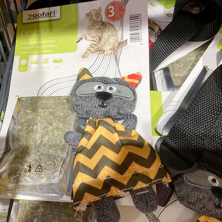 skulle vara så värst förtjust i att gå omkring i boxer shorts med pommes på;-) En kattleksak som ska fyllas med medföljande ”catnip” kattmynta