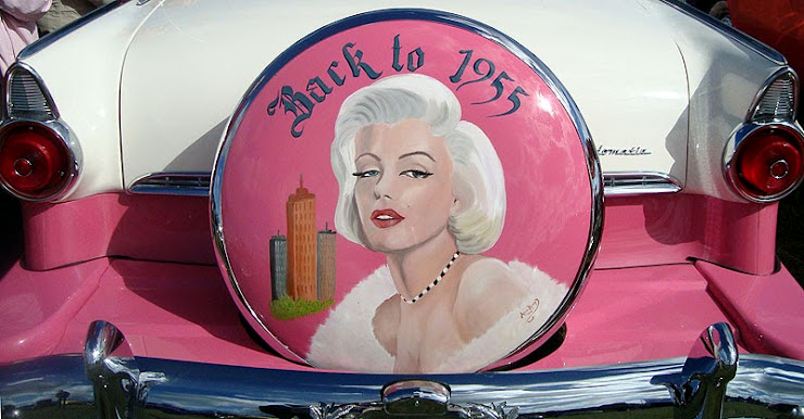 En rosa Ford Crown Victoria från 1955 med Marilyn Monroe där bak. Kolla hennes läppar och föreställ er att ni kör i bilen bakom, och att ni är kille. Förstås. Ni pratar i mobilen, handsfree. Förstås. Då tappar ni koncentrationen för en bråkdel av en sekund och kör rakt in i hennes sensuella nylle. Eller så ville ni bara ha lite närkontakt med henne. Hursomhelst en mardröm om jag får säga så själv - att krocka med en rosa bil alltså;-)